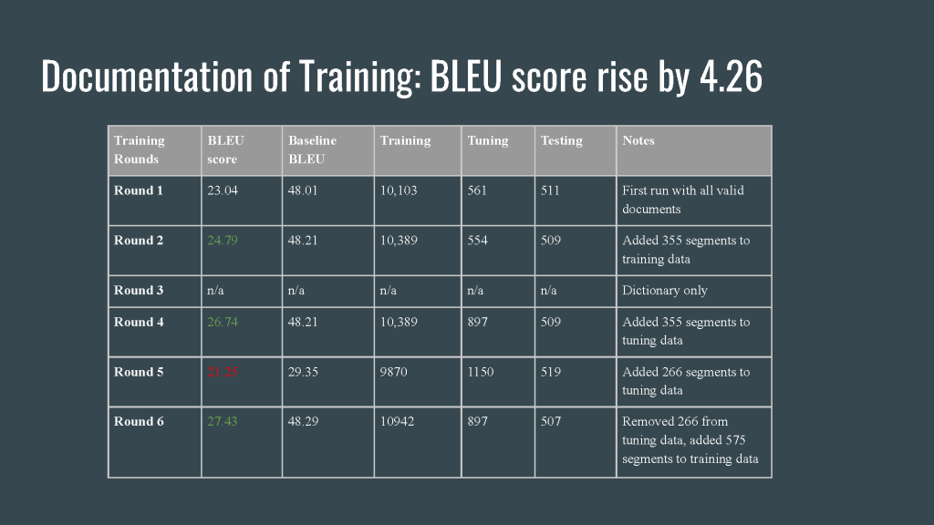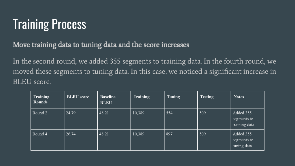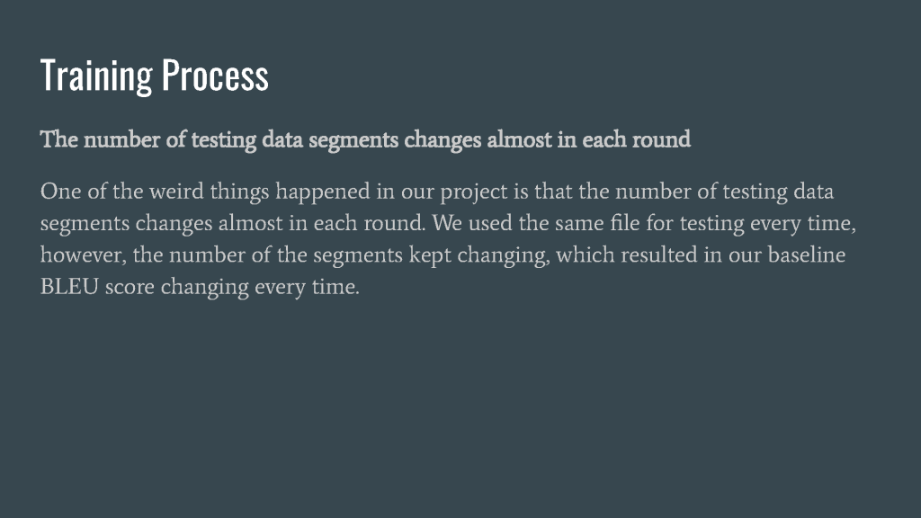 After the training, our BLEU score rise by 4.26, which is a promising result.