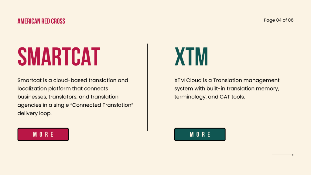 For TMX Project, we selected American Red Cross as our client. And we compared two TMX platforms for ARC, which are SmartCat and XTM.