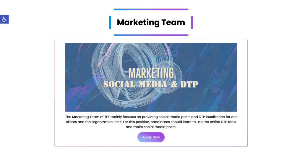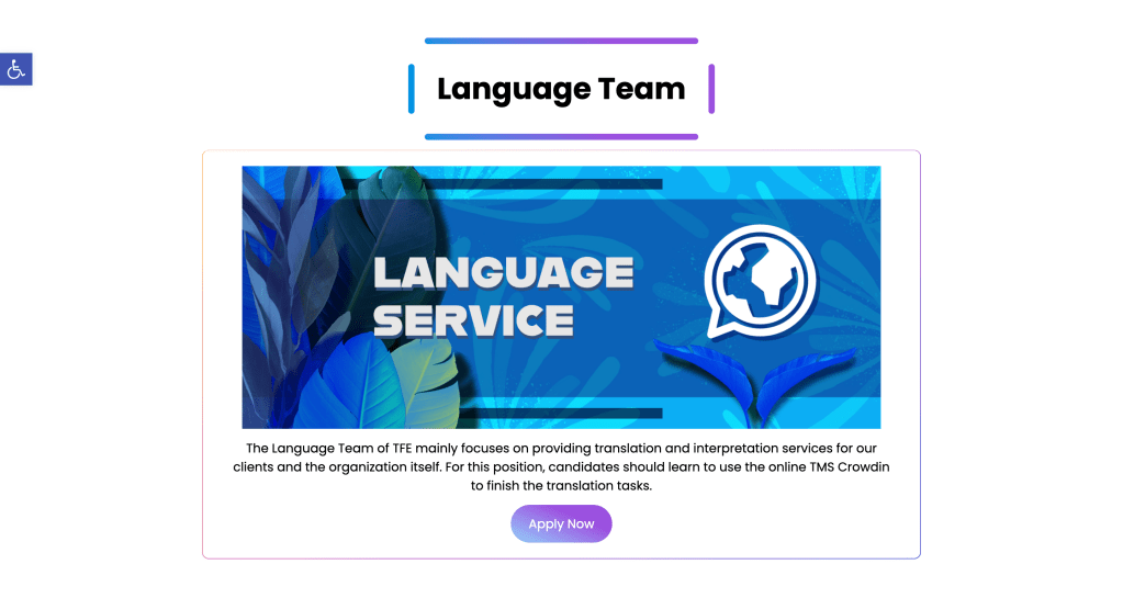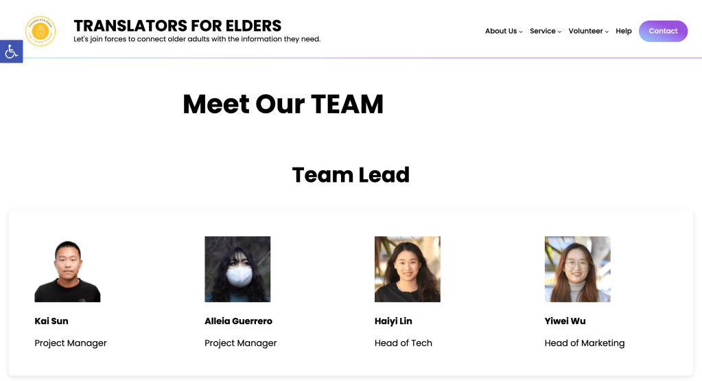 This semester, I have been working as the Head of the Team in Translators for Elders (TFE). This is an unpaid practicum internship with credit-bearing. The internship would be a minimum of 20 hours per week for at least 15 weeks.