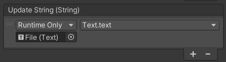 In the “Update String” section, we draged the “text” object into the “Update String” section where it says “None”. Then in the “No Function” section, we chose Text ➡ text.