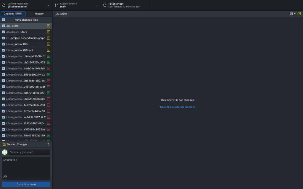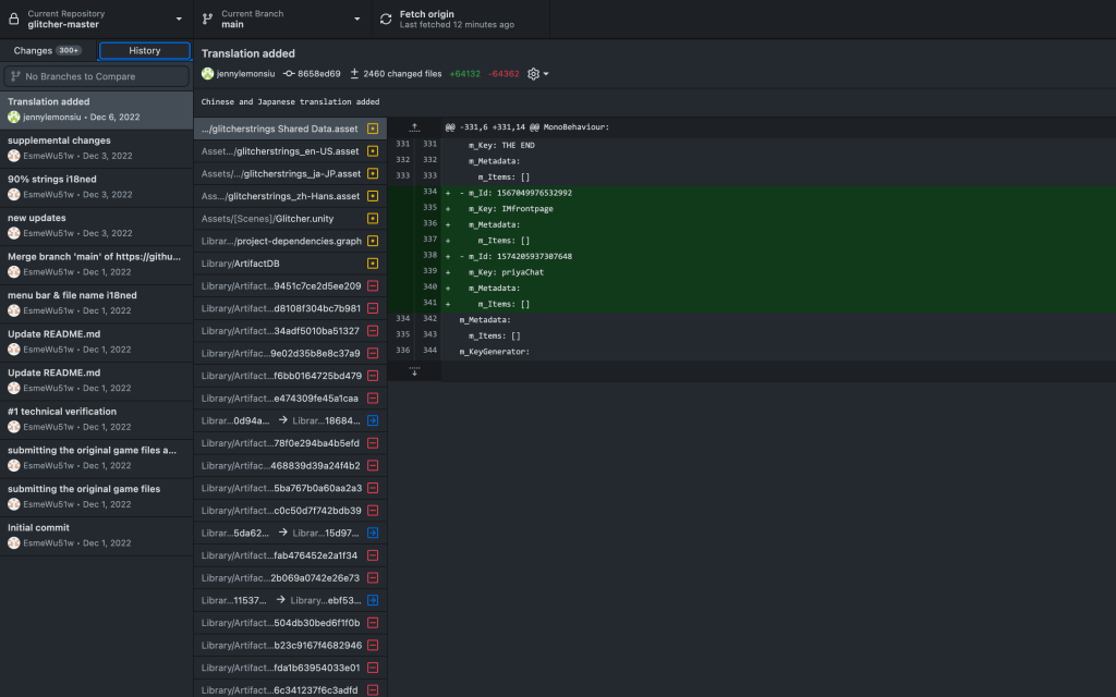 Finally, we chose to use GitHub Desktop to organize our project files. We can use the “Fetch origin” function to cache the files locally. Then after each valid change we make, we can select “Commit to main” to upload the file to the main repository.